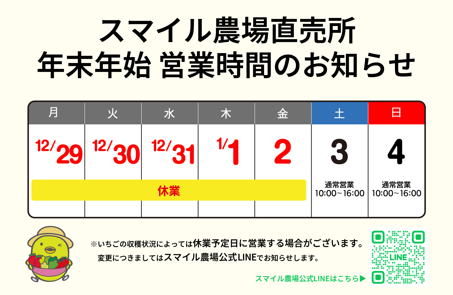 スマイル農場直売所 年末年始の営業日のお知らせ